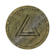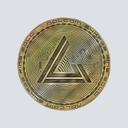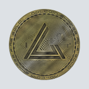 A tangible gold bullion token coin embossed with digital elements to give it a modern cryptocurrency appeal. Inset is the illuminating emblem consisting of the alphabet character 'L' carved from a 60 degree triangle.